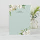 Affordable custom printed flat note cards personalized with "a note from" with your name or other custom text. Design features a feminine watercolor floral border on a pastel mint background. Use the design tools to choose any background colour, edit the text fonts and colours, and add photos to create your own one of a kind design. Perfect for teacher gifts or stylish stationery and office decor.