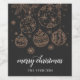 Customize these festive holiday wine labels with two lines of custom text to create a perfect hostess gift or personalized touch to your Christmas dinner spread. Rich charcoal grey labels feature an illustration of Christmas ornaments and wintry snowflakes in faux rose gold foil above your personalized text.