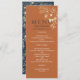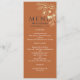 Bohemian, modern, elegant, rustic terracotta and navy blue wedding program, with sophisticated faux gold gilded floral lace and trendy calligraphy script.