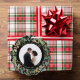 This gorgeous newlyweds holiday ornament card features a lush, festive wreath of gold leaves, Christmas greenery, and red holly berries on a modern black background. Your personal wedding photo goes in the centre along with the words "Married and Merry", and there is even a spot for your name and the year. Add a personal message to the back. A perfect keepsake from the newly married husband and wife.