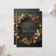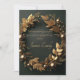 This stunning Christmas wedding invitation features holiday greenery and leaves with faux gold leaves and red holly berries, and a centre gold frame on a modern black background.