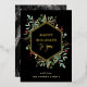 These gorgeous holiday photo cards feature a gold foil geometric frame with matching gold leaves, elegant Christmas greenery, and red holly berries on a dark, black background. Trendy gold typography says "Happy Holidays to you." Your personal photo goes onto the back of the card.