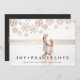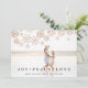 Simple and elegant holiday photo card lets your favourite family photo take centre stage. Chic design features a full bleed horizontal or landscape oriented photo, with your family name and custom holiday message overlaid at the bottom in dark charcoal grey. A sprinkling of faux rose gold foil snowflakes completes the design. Add two additional photos to the back, along with additional optional custom text.