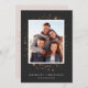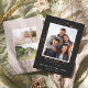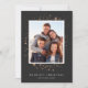 Chic and elegant holiday photo cards feature your favourite photo on a rich charcoal grey background, framed with faux rose gold foil stars and snowflakes. Add your custom holiday message (shown with "happiest holidays") and your names or family name. Personalize the back with three additional photos and the year on a contrasting cameo blush background.