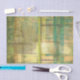 An abstract painting by Jennifer Goldberger that utilizes shades of gilded turquoise and green to create a warm, familiar feeling. A nice stroll through the woods during the spring or summer would yield some of these same colours. Bring the gift of nature to your home by purchasing this piece!