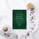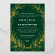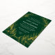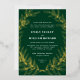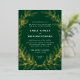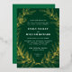 A hand drawn wreath of leafy branches in shining raised foil frames elegant type wedding invitation text allows for maximum flexibility between formal or casual wording on a forever classic, deep green background that feels rich and timeless.