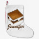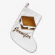 Christmas stocking features an original marker illustration of a delicious campfire s'more made with marshmallow and milk chocolate. Simply personalize with your name for a one-of-a-kind holiday decoration!