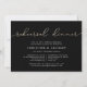 Our elegant, modern wedding rehearsal dinner or cocktail party invitations feature "rehearsal dinner" across the top in looping faux gold foil handwritten script typography on a rich black background. Personalize with your ceremony rehearsal and rehearsal dinner details beneath in modern white lettering. Includes space for the rehearsal timing and church or venue address. A chic design in rich colours for modern couples and elegant events.