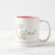 Decorative hand drawn capital G with name and meaning mug. Pretty heart and flower doodle design featuring hearts and flowers and the words G Gina Angel queen, spiritual a glorious warrior. © Unique art and design by Sarah Trett. www.sarahtrett.com for www.mylittleeden.com on zazzle