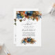 Trendy watercolor floral long distance virtual wedding invitation in accents of ginger - brown orange and indigo navy blue.
