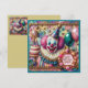A friendly, happy clown with a vintage appearance, celebrating Ginger's birthday. The Greetings on the card are "Happy Birthday Ginger". On the back of the card is a small version of the front picture, and plenty of room to write a message. Made with the assistance of AI Bing (Copilot).