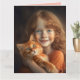 GINGER CAT AND REDHEAD GIRL ADORABLE PORTRAIT BIRTHDAY CARD