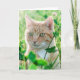 Ginger Cat with Green Eyes in Grass Card