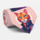 Pictured is a ginger cartoon cat in a colorful cyberpunk design