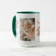 The best therapy for your everyday morning, is a kitten. Make a keepsake with his photo. Two photos of the kitten, humor red text saying, "the best therapist", and the cat's paw, all on a pale grey background, to contrast with the green hunter inside color of mug.