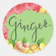 A classic round label that displays illustration of ginger roots, blossom and inscription. Ideal for your kitchen spices containers or decoration.