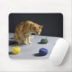 Ginger tabby cat sitting on table looking at woollen balls | Michael Blann | AssetID: sb10069719m-001