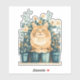 A radiant ginger tabby cat rests regally among an array of vibrant yellow and green foliage, framed by delicate flowers and teal pots. The harmonious blend of soft watercolor hues and intricate botanical details highlights the serene yet confident demeanour of the feline. This illustration perfectly balances warmth, nature, and feline elegance, making it an ideal addition for plant and cat enthusiasts.