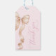 Thank your guests with style using these gingerbread bow baby shower favour tags. Decorated with a watercolor gingerbread bow, icing swirls, and candy accents, these festive tags make your party favours extra sweet for a holiday baby shower.
