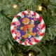 Hang this jolly gingerbread cookie in your window or on your tree! He's surrounded by bright Christmas colours and holiday peppermints and candy canes, and will stand out brightly anywhere you put him. Design is composed of original art by Eve Hannigan.