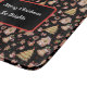 These cute gingerbread cookies decorate the cutting board on a black background. The middle allows you to personalize it with your preferred holiday greeting and the name of the family.