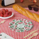 Delightful red and green gingerbread Christmas design.