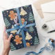 A Blue Wrapping Paper Design With Gingerbread Men And Christmas Trees In Green And White