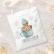 Watercolor winter baby shower favour bags feature a boy gingerbread cookie enjoying a bath in a mug of cocoa and marshmallows with pastel snowflake accents. The caption (shown here with "Cookies & Cocoa") and "thanks for coming" text can be personalized. Artwork by KL Stock. Visit my "Gingerbread Cookies & Cocoa" collection for similar birthday and holiday party invitations, Christmas cards, party supplies, gifts and decor.