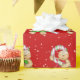 Cute gingerbread cookies with candy canes in red and green Christmas colours on red background and snowflakes.