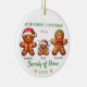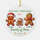Gingerbread Family of Three First Christmas Ceramic Ornament for parents who just had their first child with mom, dad and baby gingerbread people. Our first Christmas as a family of three personalized gingerbread keepsake ornament. Celebrate the joy of a growing family with our "Our First Christmas as a Family of 3" ornament – a heartfelt keepsake for new parents to cherish their first holiday season with their little one. This beautiful ornament is thoughtfully crafted to capture the warmth and wonder of welcoming a first child, personalized with the family's names and the year for a truly one-of-a-kind piece. Made to hang proudly on the tree, it brings a touch of elegance and warmth with festive details that are sure to spark memories each holiday season.