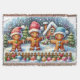 Celebrate the sweetness of the season with this charming winter scene featuring a cheerful gingerbread family dressed in festive hats, standing joyfully in the snow before a cozy cottage. Colorful buttons, candy-like decorations, and whimsical icing details bring each character to life, while gently falling snow and twinkling pine trees create a magical forest backdrop. The warm lights of the gingerbread house and a rustic wooden fence lined with vibrant ornaments enhance the nostalgic charm, evoking memories of classic holiday traditions. Ideal for holiday lovers who adore playful, storybook-style designs, this heartwarming composition blends folk whimsy and festive flair, perfect for seasonal displays and winter decor. AI generated artwork.