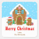Gingerbread House Blue and Red Merry Christmas Square Sticker