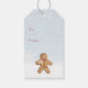 Gorgeous Christmas Gift tag featuring a watercolor illustration of Gingerbread House with a snowy background.