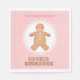 This cookie exchange napkin design features a festive Gingerbread cookie decorated with pink on a white background with a pink and white polka dots. The words "cookie exchange" are written below using cookie shaped latters. Coordinates with the Gingerbread Party collection. You can personalize with your name.