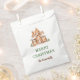 Festive Christmas party favour bag featuring a gingerbread house. Perfect for a Gingerbread House Decorating Party. The words can be changed to suit your own details or requirements
