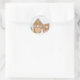 A sweet-looking gingerbread house, topped with whipped cream and gumdrops, heart-shaped windows and door and trimmed in pink. A festive wreath and snowflakes adorn the front, while a happy snowman with a scarf looks ready to greet visitors with a smile. Look for the matching envelopes, greeting card and stamps!