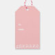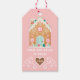These gingerbread house gift tag is perfect for addressing gifts this year. The front says "From our house to yours." You can personalize with the year. Colours include, brown, pink, aqua and white.