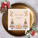 Charming gingerbread house holiday party paper napkin with festive brown design featuring gingerbread stars, trees and gingerbread house. Perfect for Christmas gatherings with candy cane accents and holiday cheer. Ideal for festive celebrations. Place your own family name or someone else's or delete the text if you want a more simpel design. Matching items in my store UnuqieDesigns.