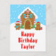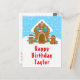Gingerbread House Red and Blue Happy Birthday Postcard