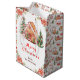 This fun and festive gift bag can be personalized with your name, relation or title. It features a watercolor gingerbread house and beautiful red poinsettia flowers. The text combines handwritten script and sans serif fonts for a stylish and modern look. The snowman, decorated pine trees and holiday wreath add a festive touch. This is perfect for Christmas gifts and party favours.