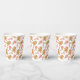 These bright and colourful Holiday paper cups feature a pattern using images of a gingerbread man, a red and white striped candy cane, and a lollipop. The images are placed on a white background. Fun for both adults and kids!