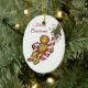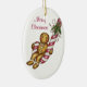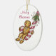 A cute gingerbread boy is swinging on a candy cane on this Christmas ornament! Use this holiday gingerbread ornament as a gift, teacher's gift, christmas decoration, etc...The design is from an original illustration.
