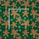 This Christmas fabric features gingerbread man pattern con dark green background. The design is accented with small, modern snowflakes.