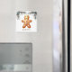 A festive design featuring a sweet gingerbread man cookie with pink on his hands and feet and white icing accents. The smiling face draws you in. A touch of pine and soft pink leaves adorn the top of the magnet. Simple says 'I love gingerbread' The saying can be customized to your preference.
