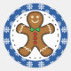 Gingerbread Man on Blue White Snowflakes Pattern Classic Round Sticker