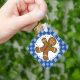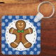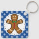 Gingerbread Man on Blue White Snowflakes Pattern Keychain