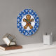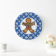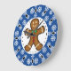 Gingerbread Man on Blue White Snowflakes Pattern Large Clock