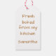 Cute gingerbread man with bow tie gift tag on a red and white gingham check background. This can be personalized on the back with your name or message.
