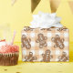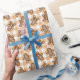 This wrapping paper features a festive Christmas gingerbread man cookie pattern on a light brown gingham plaid background. A great way to wrap gifts for a baker or cookie lover this holiday.