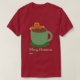 A cute gingerbread man relaxing in a hot chocolate cocoa hot tub mug fun cookie character Christmas cartoon fun baking around the holidays customizable add a saying merry Xmas happy holidays motto fun season’s greetings extra merry ginger cookie statement fun t-shirt. Get a funny holiday tee today.